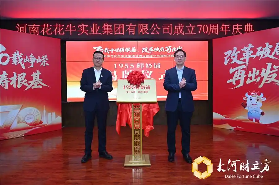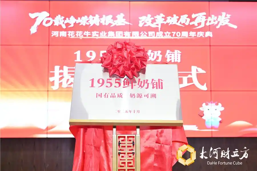 10月18日上午,在河南花花牛实业集团成立70周年大会现场,以“溯源1955,新鲜再出发”为主题,“1955鲜奶铺”正式揭牌启动,开始探索鲜奶牧场直供新模式。这是70年老牌国企在行业变革中主动突围、改革重生的创新举措。