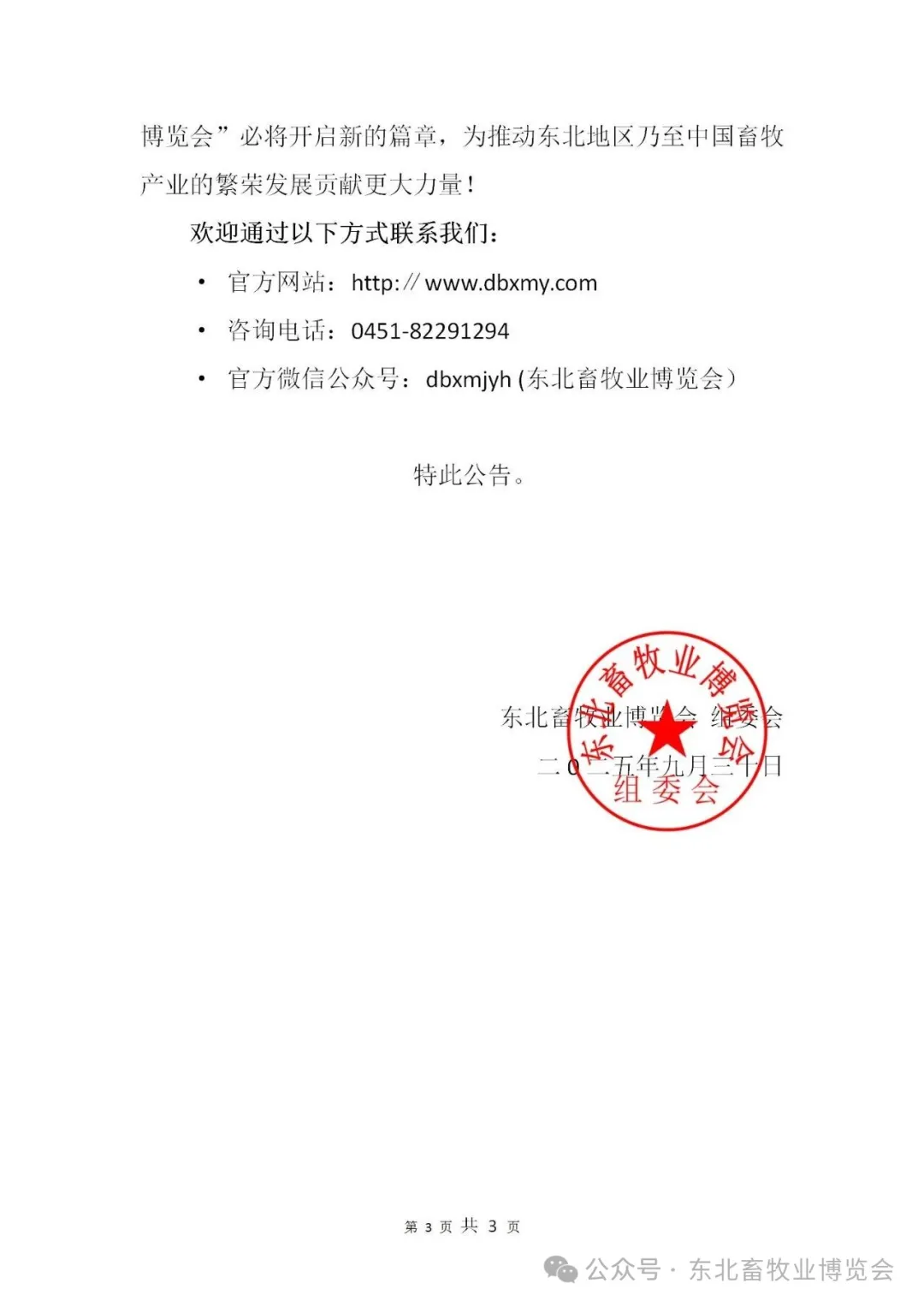 即日起,所有官方文件、宣传材料、线上平台将统一使用新名称 “东北畜牧业博览会”。