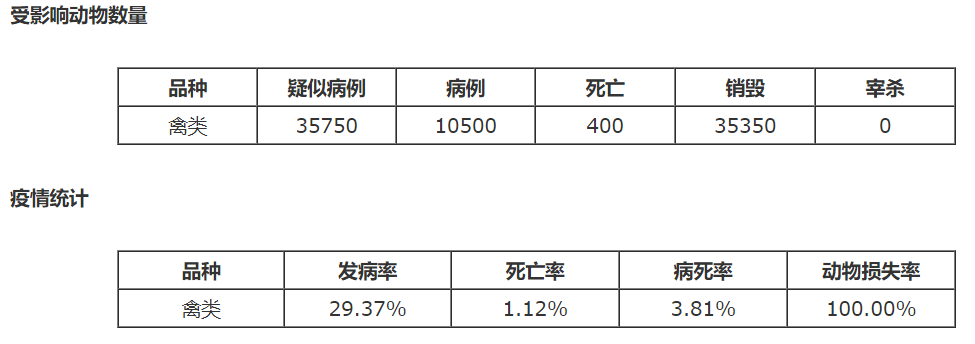 据世界动物卫生组织(OIE)消息,2020年10月30日,荷兰农业、自然和食品质量部向OIE报告称,荷兰发生一起H5N8型高致病性禽流感疫情。