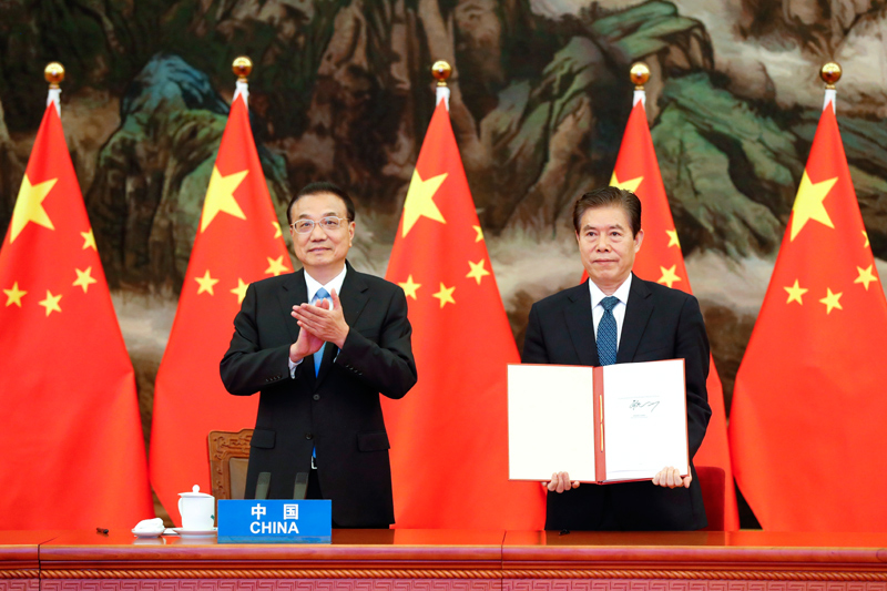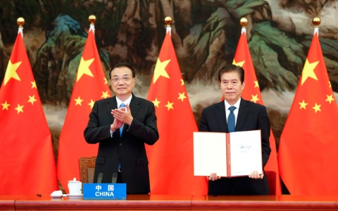 李克强说:“这不仅仅是东亚区域性合作极具标志性意义的成果,更是多边主义和自由贸易的胜利。”