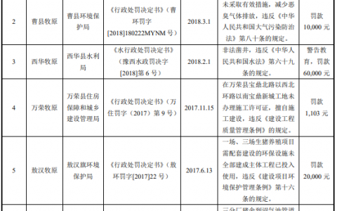 牧原股份近三年7次违法违规遭罚 其中环保处罚3起