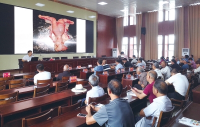 培训中,省肉牛体系首席专家王二耀从肉牛的生殖系统结构、母牛发情鉴定、配种要点、档案记录等方面,全面讲授了实用肉牛繁殖技术。