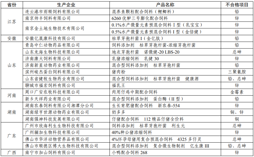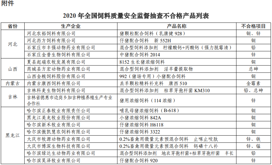 八、2020年全国饲料质量安全监督抽查不合格名单