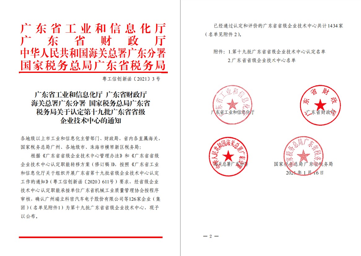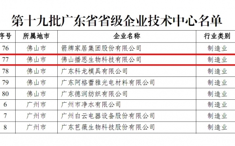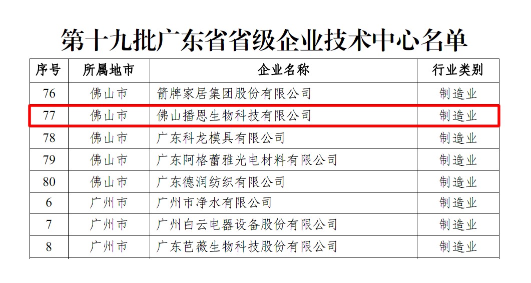 近日,广东省工业和信息化厅、广东省财政厅、海关总署广东分署及国家税务总局广东省税务局联合发布《关于认定第十九批广东省省级企业技术中心的通知》,佛山播恩被认定为“广东省省级企业技术中心”。