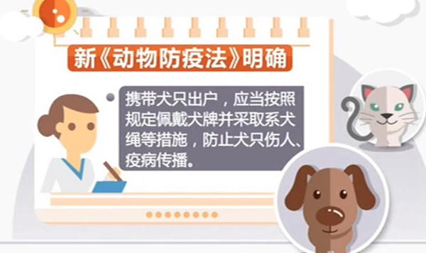 1月22日,十三届全国人大常委会第二十五次会议表决通过了新修订的《动物防疫法》,该法将于2021年5月1日起正式施行。先来看看遛狗要牵绳的新规,新《动物防疫法》明确,携带犬只出户,应当按照规定佩戴犬牌并采取系犬绳等措施,防止犬只伤人、疫病传播。同时,单位和个人饲养犬只,应当按照规定定期免疫接种狂犬病疫苗,凭动物诊疗机构出具的免疫证明向所在地养犬登记机关申请登记。