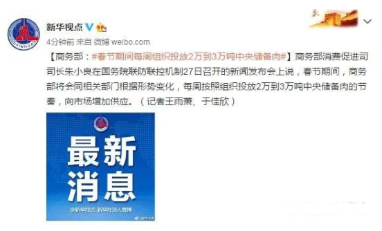 春节期间每周都将投放2万到3万吨储备肉