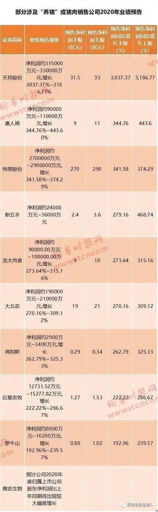 据目前已经披露的养猪企业的业绩预告,上市猪企2020年业绩普遍翻倍。