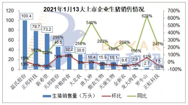 13家上市企业1月份生猪销售情况