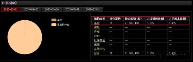 根据数据统计,在2020年的半年报中,新希望的基金持仓家数高达376家,持仓股数也达到了1.43亿股,占流通股的比例达到3.42%;但到了2020年四季度,基金持仓家数跌剩11家,仅为半年报时的零头,持仓股价仅有2167万股,占流通股的比例仅为0.5%。