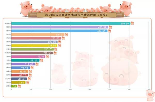顶端新闻·大河报记者梳理图表发现,无论是生猪存栏量,还是出栏量,2020年末驻马店的数据都独占鳌头,在省辖市中排名第一,其中存栏606.56万头,出栏687.3万头。周口、南阳分别位列第二、第三。三门峡、郑州以及济源示范区位列后三位。