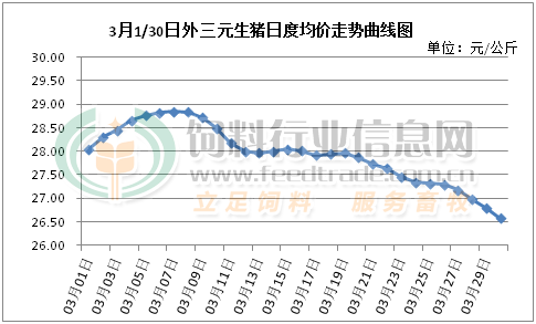 生猪现货价格持续走跌,生猪期货也好不到哪里去,开门红风光不再,2109合约价格基本跌回春节前水平,截止3月30日2109合约收盘价为27030元/吨,盘中一度跌至26310元/吨。