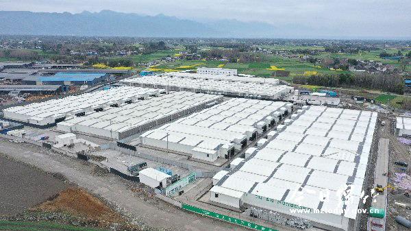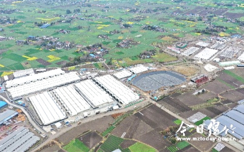 今日绵竹3月31日消息,在广济镇境内,一排排白色钢架屋顶的大型养猪场引人注目,这就是绵竹牧原30万头生猪养殖项目建设工地。