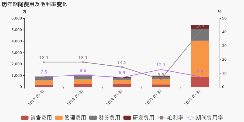 公司2021一季度营业成本4.3亿,同比增长481.7%,低于营业收入824.3%的增速,导致毛利率上升35%。期间费用率为7.5%,较去年下降5.2%,费用管控效果显著。经营性现金流由-1353.8万增加至7314.4万,同比上升640.3%。
