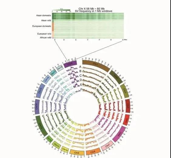 研究团队对梅山猪和杜洛克猪的基因组进行了比较分析,发现梅山猪基因组共存在49103个结构变异,其中4.02%是亚洲猪特有的结构变异。研究还发现亚洲猪X染色体上存在一个30 Mb的特有结构变异热点,该热点富集了与亚洲猪脂肪沉积、高繁殖力等特异性表型相关的基因。该研究得到国家自然科学基金重点项目、国家重点研发计划等项目的支持。