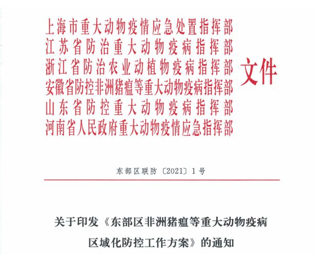 2、2021年10月31日前,东部区内各省(省辖市)一致实施生猪运输指定通道制度。