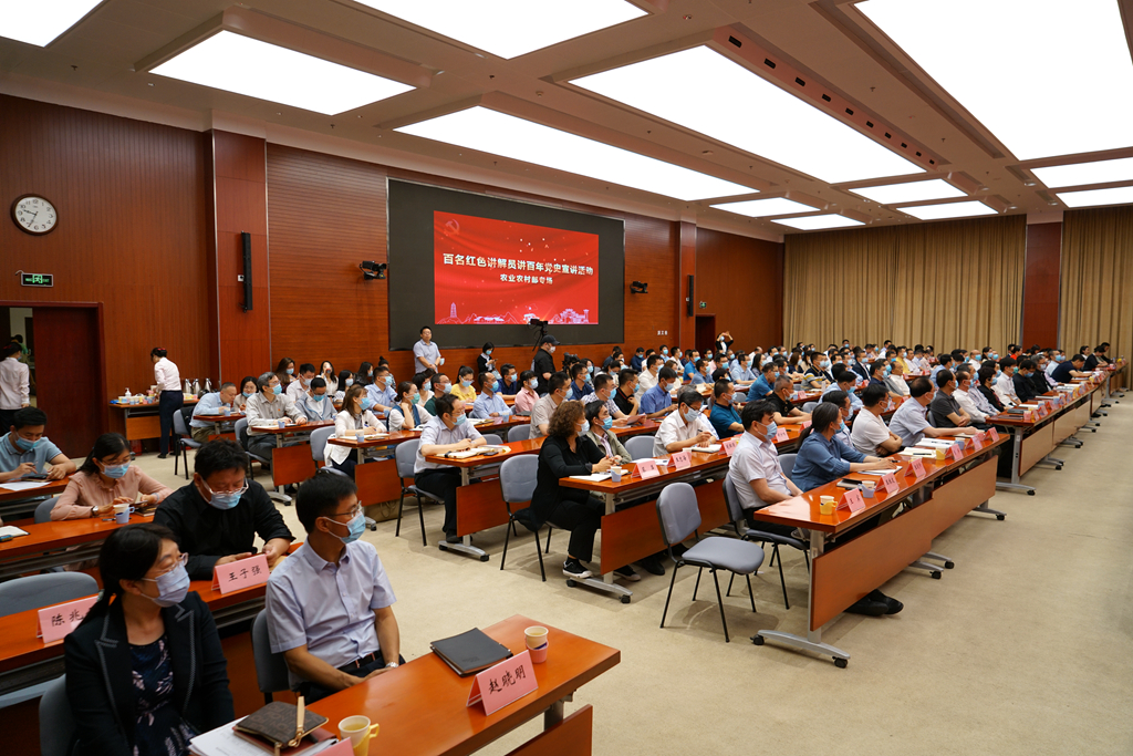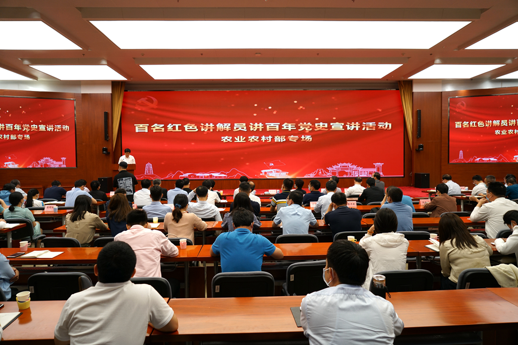 本网讯 日前,“百名红色讲解员讲百年党史”宣讲报告会在农业农村部举行。此次宣讲是部党史学习教育的一项重要活动,邀请全国红色旅游五好讲解员,围绕《红船依旧 精神永恒》《星星之火 可以燎原》等10个专题进行讲解。