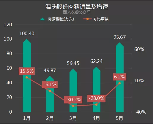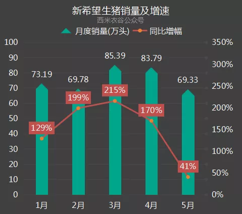 5月,新希望生猪销售收入13.96亿元,同比下降12.75%。(来源:西米衣谷)