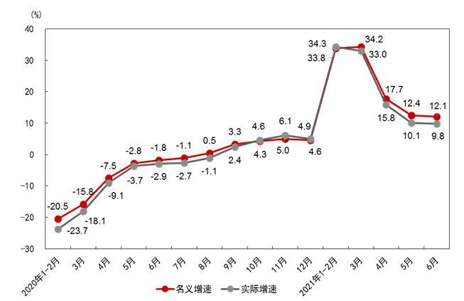 从月度看,保持稳定恢复势头。6月份,社会消费品零售总额同比增长12.1%,增速比5月份回落0.3个百分点;两年平均增长4.9%,比5月份加快0.4个百分点;从环比数据看,6月份环比增长0.70%。