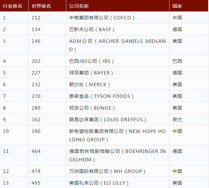 从世界看,世界500强地区集中较为明显,分别是美国、中国、德国。其中中国中粮、新希望、万洲国际也榜上有名。