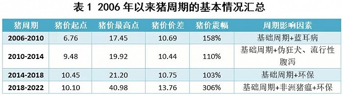 生猪行业是个典型的周期性行业,影响猪周期的因素主要有:猪的生长周期、农产品的蛛网周期、猪瘟和行业政策等,其中,猪的生长周期和农产品的蛛网周期是基础,猪瘟和行业政策会影响猪周期的时长和波幅。