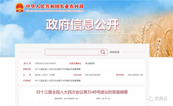 08月11日农业农村部网站消息,对于人大代表提出的“关于完善法规和顶层设计,提升畜禽种业核心竞争力的建议”做出了如下答复。