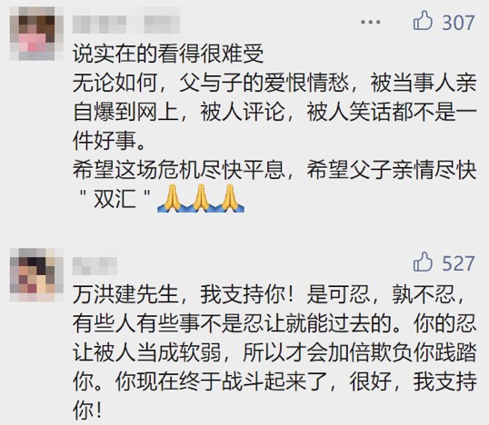 也有支持万隆网友认为,“自己儿子养大反过来跟自己对着干,让人心寒。”