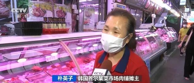 韩国首尔某菜市场肉铺摊主 朴英子:质量好的猪肉没有以前那么多,我们的生意很难做。随着肉价上涨,经济又不景气,顾客都不常来了。