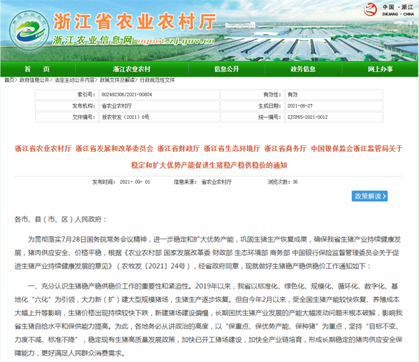 浙江:稳定和扩大优势产能 促进生猪稳产稳供稳价