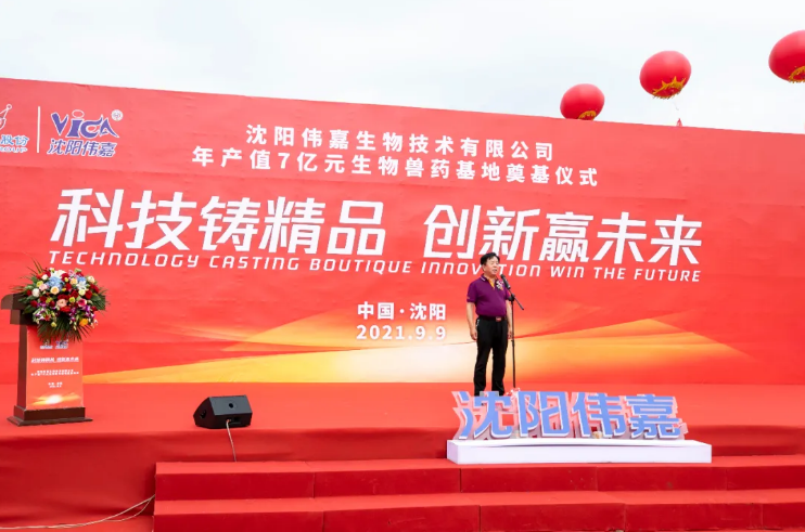 2021年9月9日,大伟嘉股份创立24周年之际,再次迎来了大伟嘉事业又一盛事——沈阳伟嘉生物技术有限公司年产值7亿元生物兽药基地落户沈阳。在响彻云霄的锣鼓声中,在喜庆激昂的音乐声中,在激情热烈的欢呼声中,以“科技铸精品 创新赢未来”为主题的沈阳伟嘉生物技术有限公司年产值7亿生物兽药基地开工奠基仪式隆重举办!