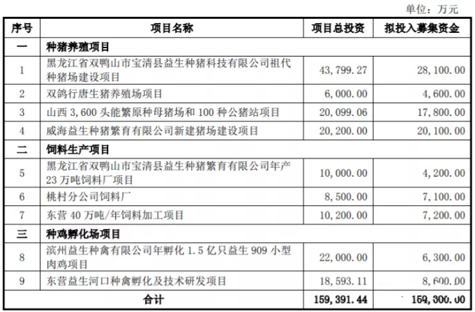 10月8日,益生股份发布公告,披露公开发行可转换公司债券预案。本次发行募集资金总额不超过104,000万元,扣除发行费用后,募集资金净额拟投入种猪养殖项目、饲料生产项目、种鸡孵化场项目。其中拟4亿元建设1.5亿只小型肉鸡项目。