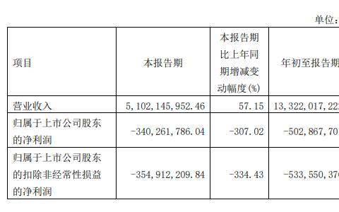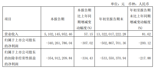 2021年3季度亏损3.4亿元同比降307.02%