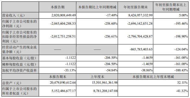 天邦股份10月30日发布三季度业绩公告。公司第三季度实现营业收入约28.21亿元,同比下降17.40%;实现归属于上市公司股东的净利润约-20.46亿元,同比下降258.60%。公司前三季度实现营业总收入84.3亿,同比增长5.00%;实现归母净利润-26.96亿,同比下降195.46%。