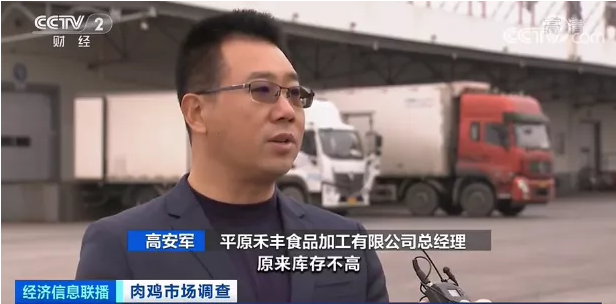 平原禾丰食品加工有限公司总经理 高安军:之前客户买货积极性高,现在买得少。目前库存不高,4天5天左右,但是现在库存在逐渐增加,未来很可能出现爆库。