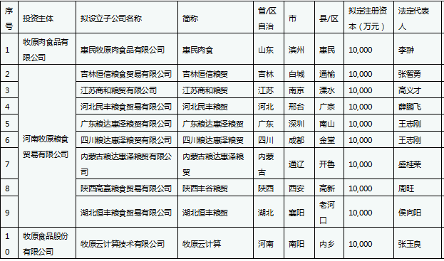公司子公司牧原肉食品有限公司在山东省滨州市惠民县设立子公司开展生猪屠宰业务是根据行业形势的变化以及公司长远发展规划的考虑,是公司由养殖环节向下游发展的重要举措,将对公司未来发展有重要且积极的意义,有利于公司实施战略发展规划。公司子公司河南牧原粮食贸易有限公司在吉林省白城市通榆县、江苏省南京市溧水区、河北省邢台市广宗县、广东省深圳市南山区、四川省成都市金堂县、内蒙古通辽市开鲁县、陕西省西安市高新区、湖北省襄阳市老河口市设立子公司开展粮食贸易业务,有利于整合全球优质优价原料,优化原粮供应结构。公司在河南省南阳市内乡县设立子公司建设数据中心,保障数据信息安全,推动智能养殖发展。