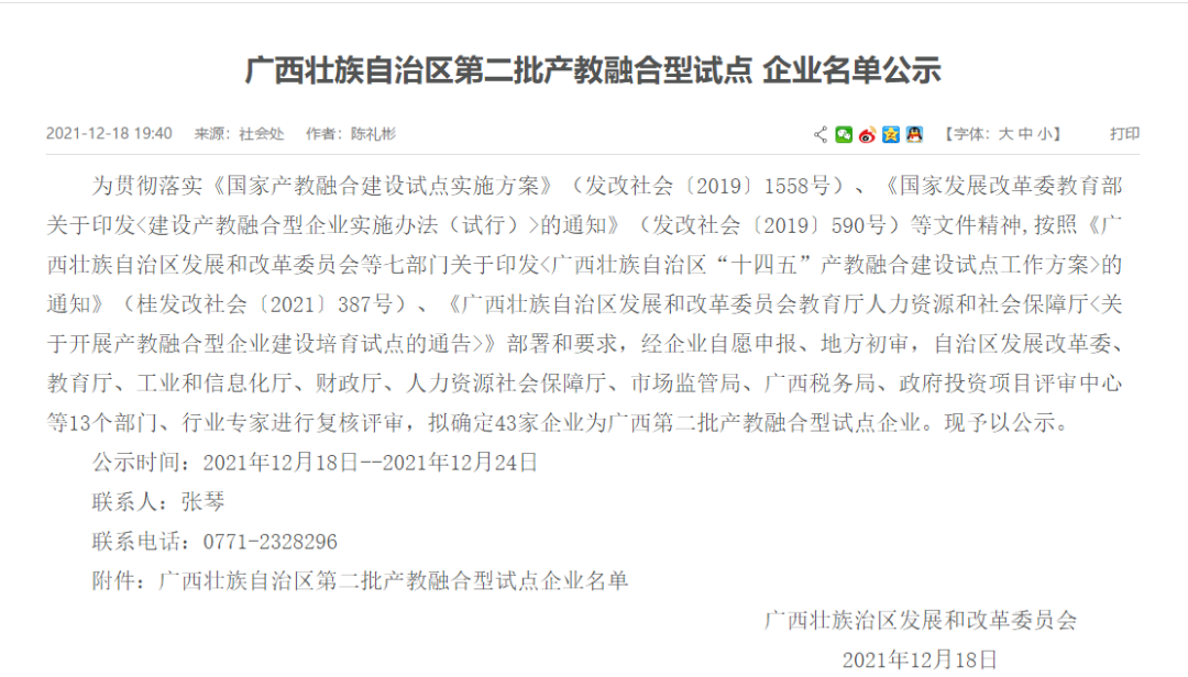 12月18日,广西壮族自治区发展和改革委员会等多部门印发通知,公布第二批广西产教融合型试点企业名单,广西扬翔股份有限公司(以下简称“扬翔”)入选。