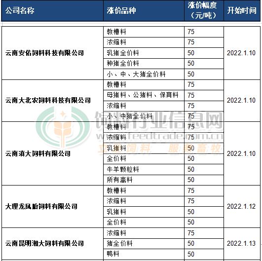 近期,安徽傲农生物、南昌东方希望等饲企发布饲料价格上涨的通知,价格普遍上调50-100元/吨。