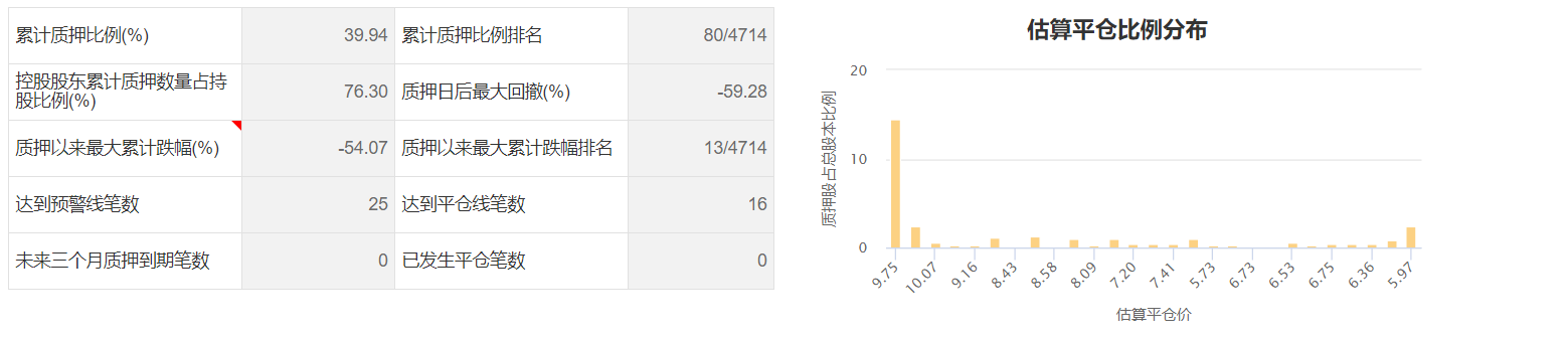 四季度巨亏加之股价低迷引发市场担忧,截至2021年12月20日,其控股股东及其一致行动人累计已质押12.57亿股,累计质押融资的比例已接近80%。股价持续下挫导致多笔股权质押或达到平仓线,根据东方财富数据统计,已有16笔质押达到平仓线,25笔质押达到预警线,合计7.68亿股。