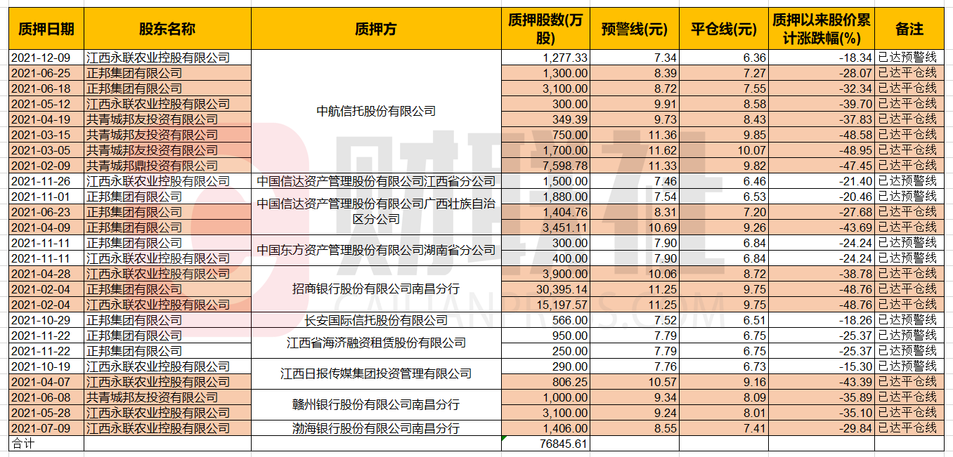 (已达预警线及平仓线明细表来源:choice数据财联社记者整理)