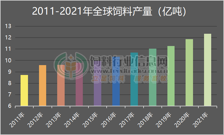 《第11届奥特奇年度饲料调查报告》又新鲜出炉,据统计,来自全球140多个国家和28,000多家饲料厂2021年生产饲料为12.355亿吨,同比增长2.3%,而2020年为12.079亿吨。