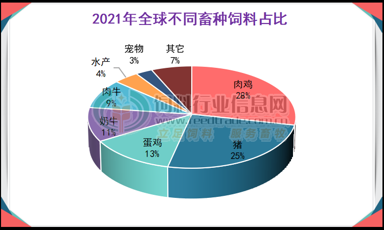 由于生猪产业从非瘟影响中的快速恢复,尤其是日本、韩国、马来西亚和中国,其饲料产量成为所有畜种中增长仅次于宠物饲料的品种,2021年全球猪料产量3.1亿吨,同比去年增长6.6%;但是印度尼西亚、缅甸、菲律宾、越南等国继续受非瘟影响严重,而欧洲主要是猪肉过剩。