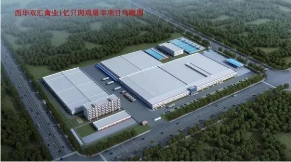 在去年成立西华禽业并投资33.5亿元用于肉鸡全产业链项目的双汇,近日总投资5.22亿元,双汇熟食加工项目已在西华县落地在建、1.2亿羽鸡苗孵化厂项目鸟瞰图、80万吨饲料厂项目鸟瞰图均已公布。