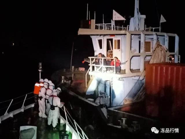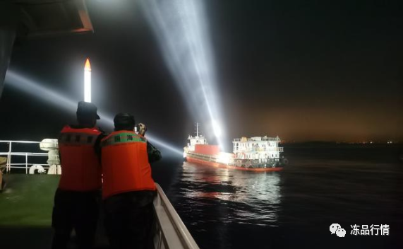 经现场登临检查发现,该船有船员4人,载有无合法手续冷冻肉一批,船上人员均无法提供任何有效船舶证件、货物合法来源证明及检验检疫证明等相关资料,涉嫌走私。执法员随即将涉案船舶及所载冻品依法进行查扣。