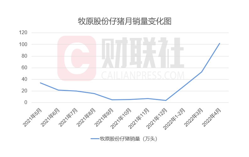 值得一提的是,自今年以来牧原股份仔猪销量连续上涨,4月仔猪销量已达101.9万头,占当月出栏量16%。上述一线从业人员表示,市场购买仔猪热情较高,现在牧原股份的仔猪销量和价格都不错。