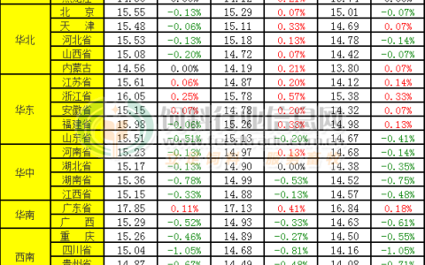 2. 主流市场内三元大猪全国销售均价14.88元每公斤,相比昨天上涨0.03%;
