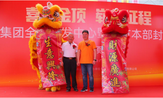 播恩集团董事长邹新华和蒋宗勇理事长为封顶仪式进行了醒狮点睛。