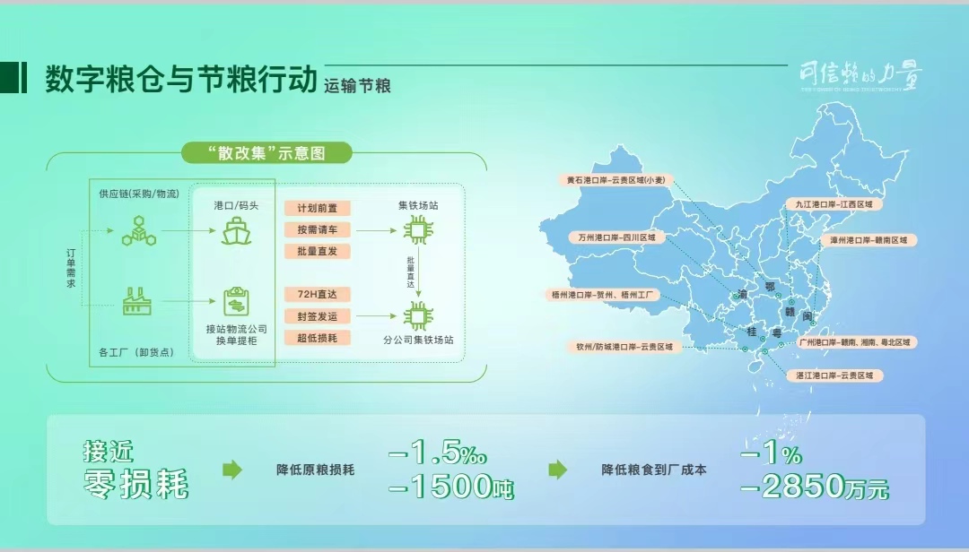在运输环节,新希望将一部分传统的散粮发运改为集装箱发运,在降低成本的同时减少物流环节的损耗。