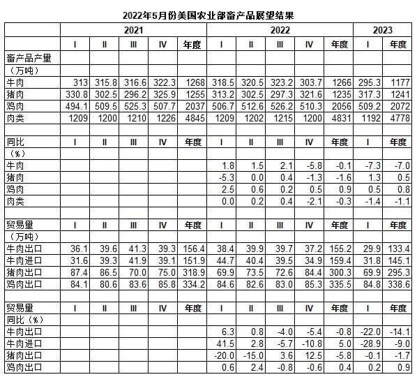 由于最近肉鸡平均体重下降,2022年鸡肉产量小幅增长、增速下滑,尤其是二季度和三季度增幅仅0.2%和0.5%。2022年肉鸡出口预计至335.5万吨。2023年出口预测为338.6万吨。肉鸡价格二季度将小幅下跌,但鸡翅、鸡胸等肉鸡产品价格上涨。
