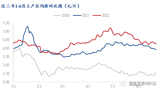 截止到6月22日,2022年国内主产区鸡蛋均价为4.37元/斤,较2021年同比增幅8.71%,较2020年同比增幅53.87%,通过图中也能看出,今年的鸡蛋均价明显是高于往年同期的,尤其是进入3月份以来,鸡蛋价格开启了上涨模式,国内鸡蛋价格的上涨奠定了出口鸡蛋价格上涨的基础。