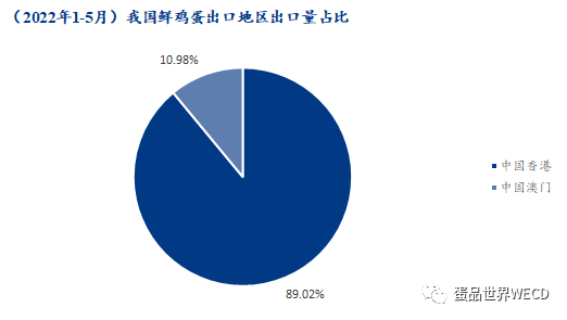 受禽流感爆发的影响,4月4日,香港特区政府食物环境卫生署食物安全中心宣布,根据世界动物卫生组织通报,美国部分地区暴发高致病性H5N1禽流感,中心即时指示业界暂停从有关地区进口禽肉及禽类产,以保障香港公众健康。通过图中可以看出,我国鸡蛋主要出口香港和澳门地区,香港地区限制了从美国等国进口家禽类以后,对国内的需求明显增加了,助推了我国鲜鸡蛋出口量的增加。
