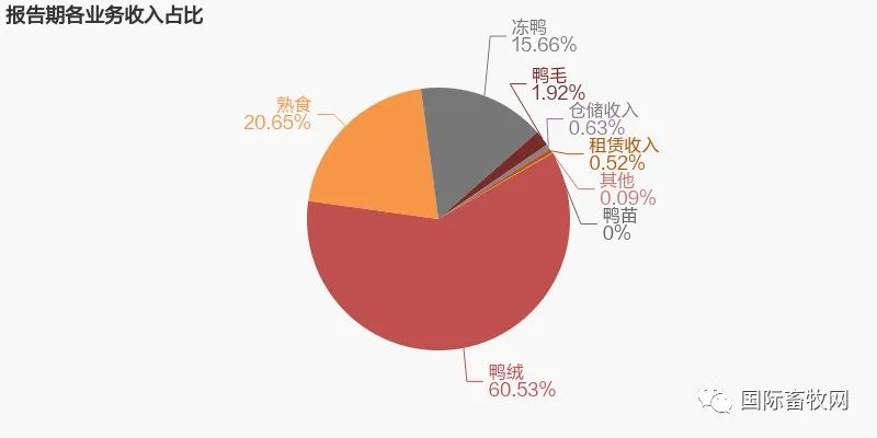 财报显示,今年上半年,ST华英的羽绒板块稳步发展,实现营业收入7.16亿元,同比增长21.10%,占总营收的60.53%;冻鸭及深加工实现营业收入4.29亿元,占比36.31%。